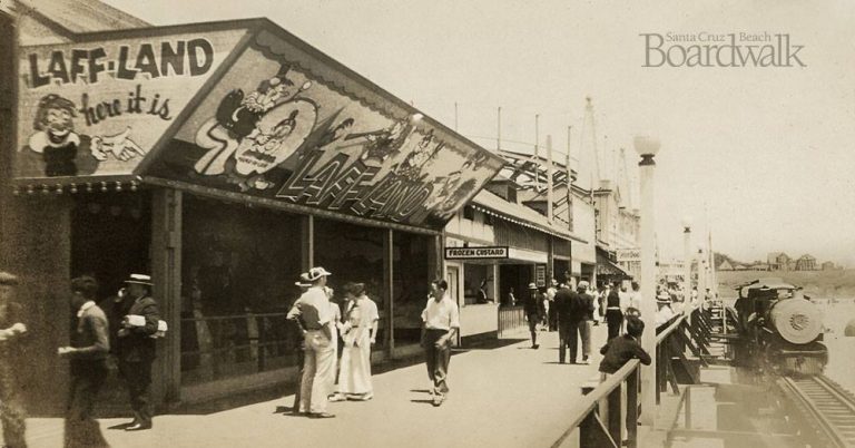 During the 1930s, tourists from the San Francisco Bay Area could take the Southern Pacific Railroad’s Sun Tan Special right to the Boardwalk. Except for the years 1941 to 1947,