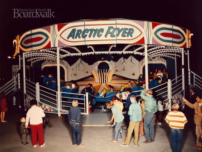 Remember the “Arctic Flyer”? This photo was taken in 1973. Two other similar rides ran in that location: Video Storm and Tsunami which is there now.